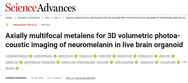성균관대학교 생명물리학과 김인기 교수 연구팀이 박별리 교수, 박종찬 교수 연구팀 및 포스텍 노준석 교수 연구팀과 협력해 메타렌즈 기반 3차원 광음향 현미경(photoacoustic microscopy) 기술을 개발했다.